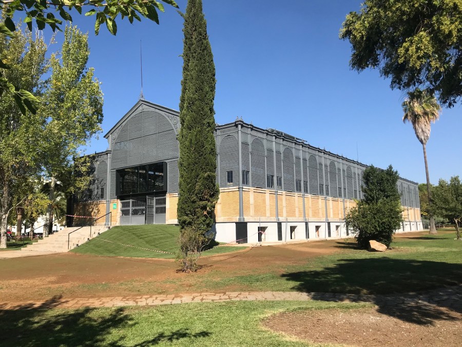 El edificio se concebía como de estructura y cerramiento metálico, encargado su realización material al ingeniero y fundidor Dionisio Pérez Tobía, miembro de la sociedad sevillana “Pérez Hermanos”, autores también de varias obras en Sevilla y en Extremadura. En particular, en Badajoz se puede apreciar la inscripción en las barandillas realizadas para el Puente de Palmas.
