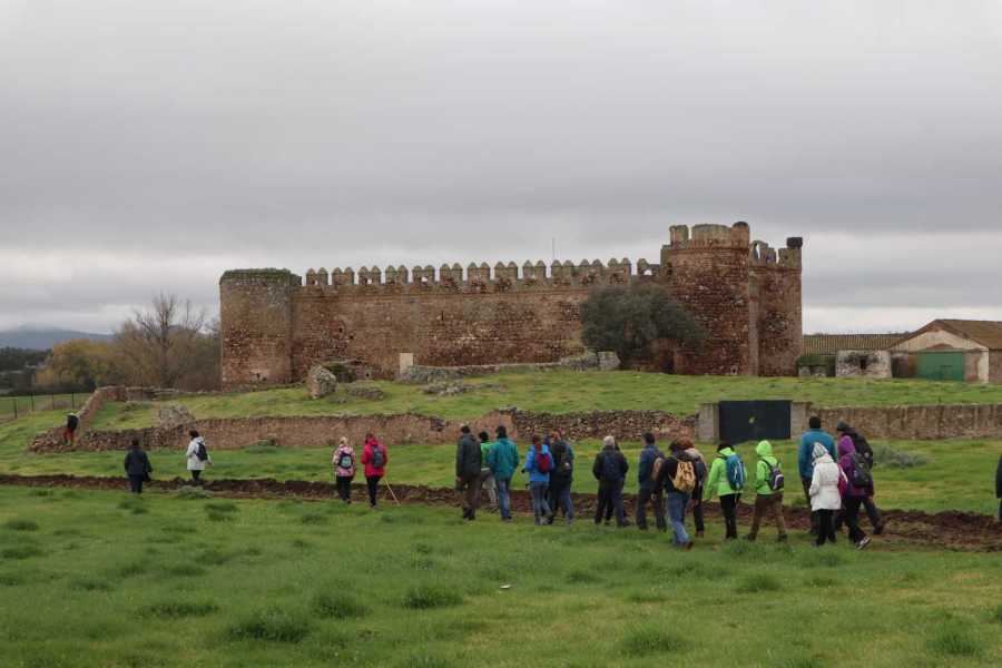 Entramos así en la dehesa “Los Arcos”, y tras un breve recorrido empezamos a divisar en el horizonte una fortaleza que se nos antoja como impropia de un inhóspito lugar que no es montañoso y no parece resultar apropiado para ubicar una edificación defensiva. Pero sí, a unos 2,7 kilómetros de nuestro recorrido llegamos a la proximidad de un bello, aunque un tanto descuidado, castillo que se denomina como el terreno en el que se asienta. Es el Castillo de Los Arcos, y que se ubica allí precisamente por ser una fortaleza que pretendía servir de defensa del cruce de caminos. Su existencia resulta ser bastante desconocida precisamente por la ubicación que tiene y el carácter privado de su propiedad que impide acceder a sus interiores, siendo de agradecer que sus propietarios nos hayan permitido acceder a sus inmediaciones y patio de entrada.