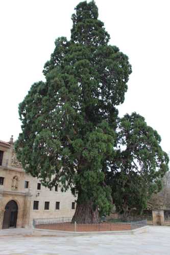 No es este el único árbol al que destacar, porque justo a la entrada de la hospedería se encuentra una impresionante secuoya gigante, que bien podríamos decir que tiene una edad muy parecida a la del ciprés.
