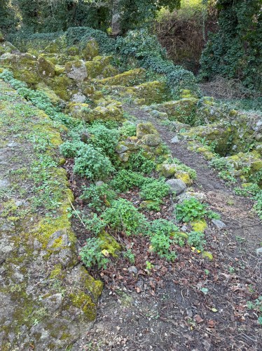 Tras cruzar un badén sigue el grupo por una vereda o trocha a la izquierda que presenta mucha vegetación para llegar a un robledal donde el camino se estrecha y exige que los caminantes transitemos de forma individualizada. Así discurre el panorama hasta entrar en el concebido como Camino Real que baja desde Piornal a Navaconcejo, una exigente ruta de senderismo que ofrece un desnivel de unos 600-700 atravesando cerezales, robledales, castañares por un histórico camino empedrado. Por aquí se llegará a otra cascada, la del Calderón, ubicada en la Garganta del Bonal, que es un destacado salto de agua de unos 30 metros de altura, conocida por ser una gran losa de roca pulida sobre la que cae el agua, creando una pequeña poza de aguas frías y cristalinas. Un panel informativo cuenta que en los años veinte del siglo pasado se utilizaba el salto de agua para generar electricidad, aunque solo tenía la capacidad de abastecer a Piornal durante un par de horas al día.